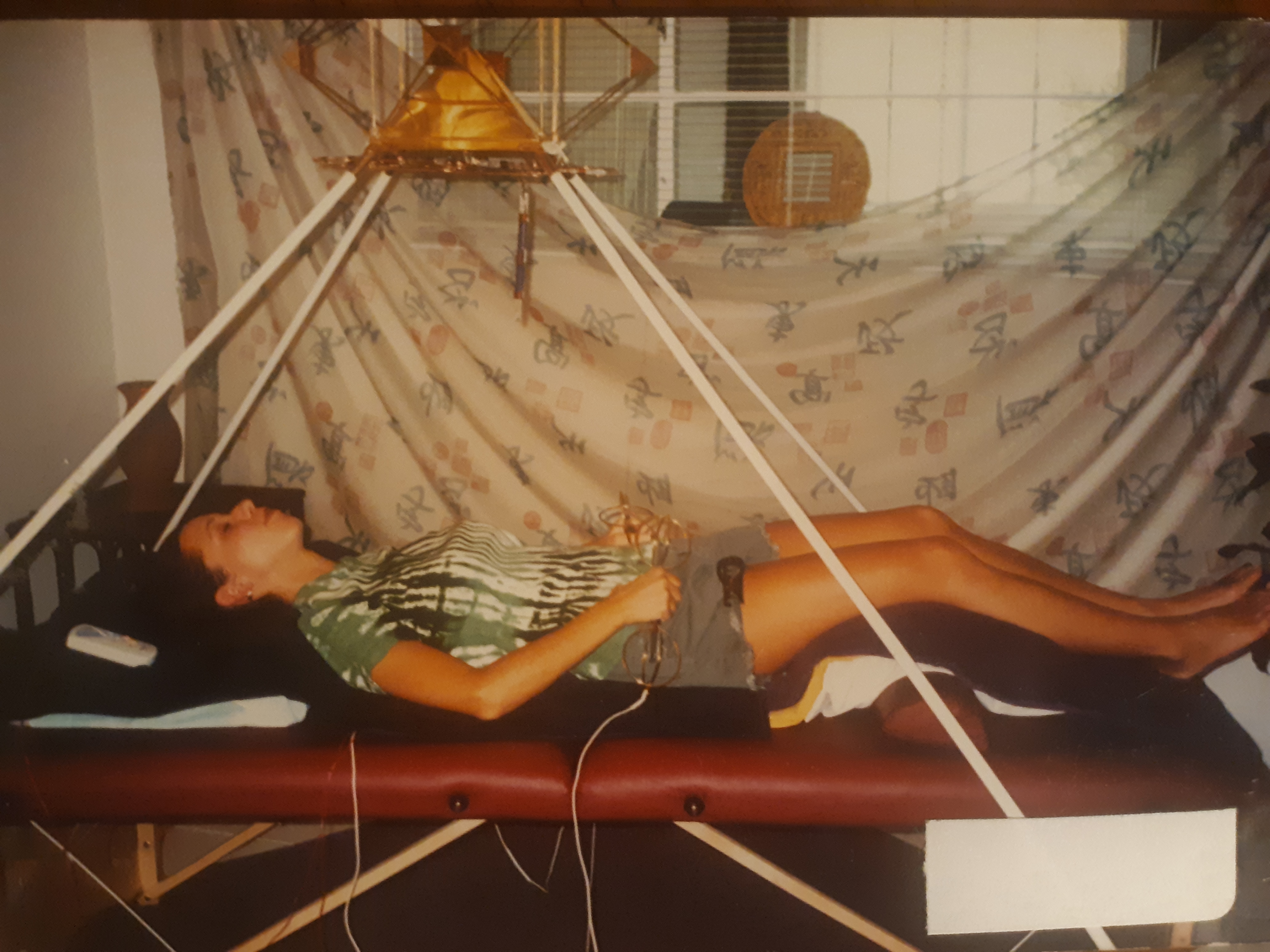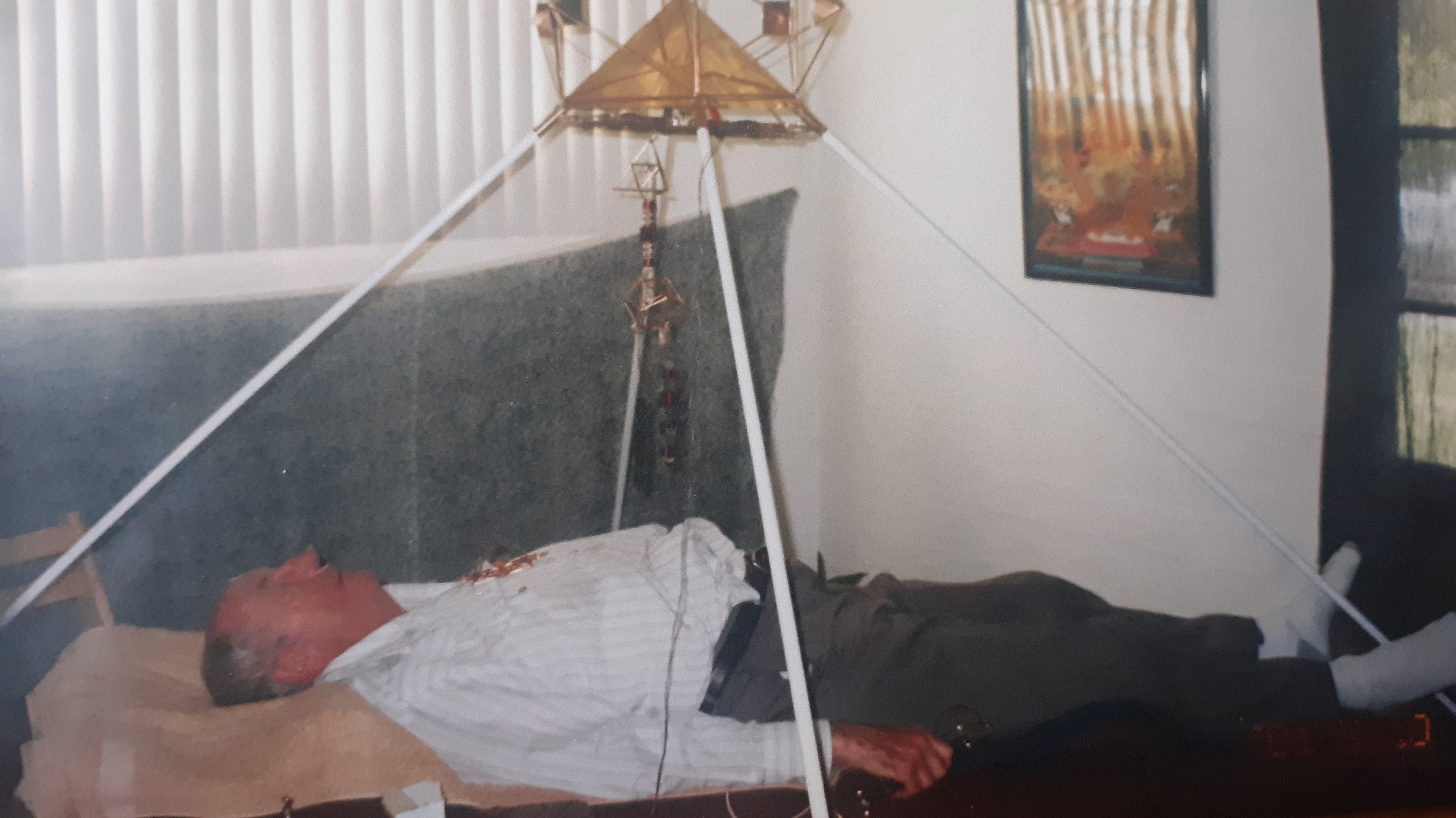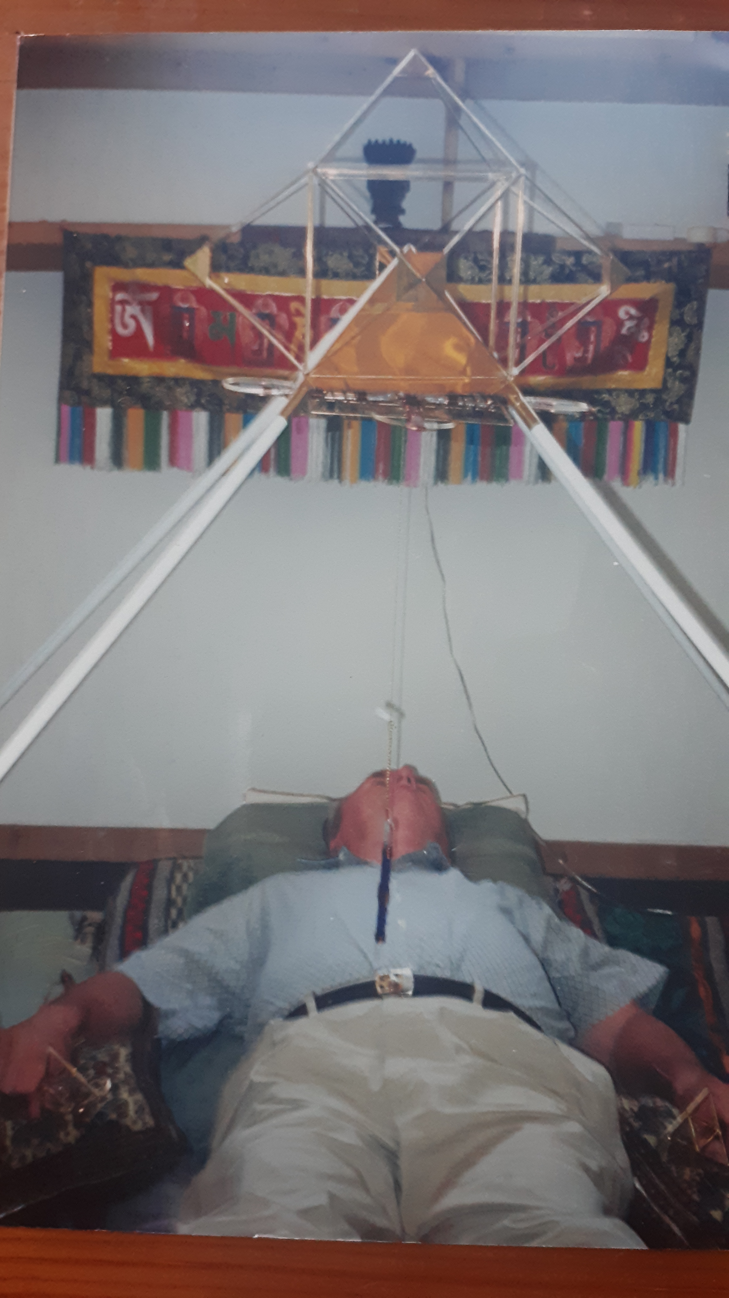Applying frequencies to a 7-foot by 7-foot copper, crystal, and gold pyramid as I work has proven interesting over the years. Certain electrical units utilize waveforms that mimic the specific type of waves as found in the acupuncture meridians. Other wave forms applied externally allow one to form complex wave forms utilizing simple division of frequency theories so frequencies are brought into the brain wave region and many specific interrelationships between frequencies in the human brain region and human voice frequency have been discovered yet the ultimate wave forms themselves remain as sine waves.